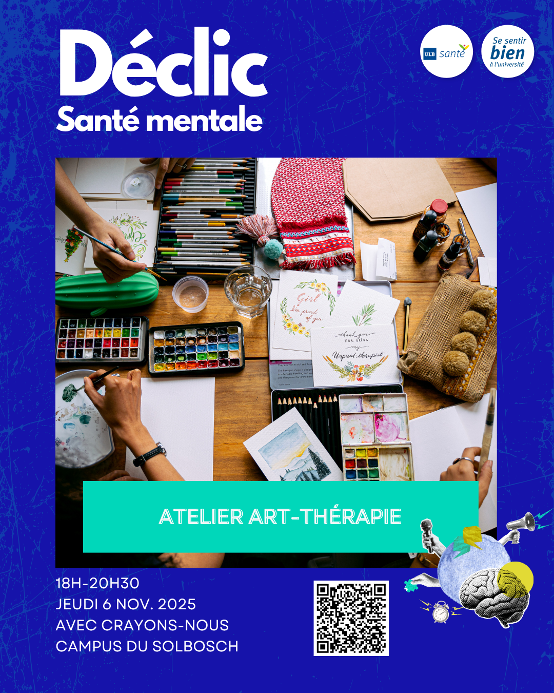 - 18h-20h30 - Outiller : atelier "art-thérapie : prendre soin de sa santé mentale par l'activité artistique" avec Crayons-nous - Campus du Solbosch