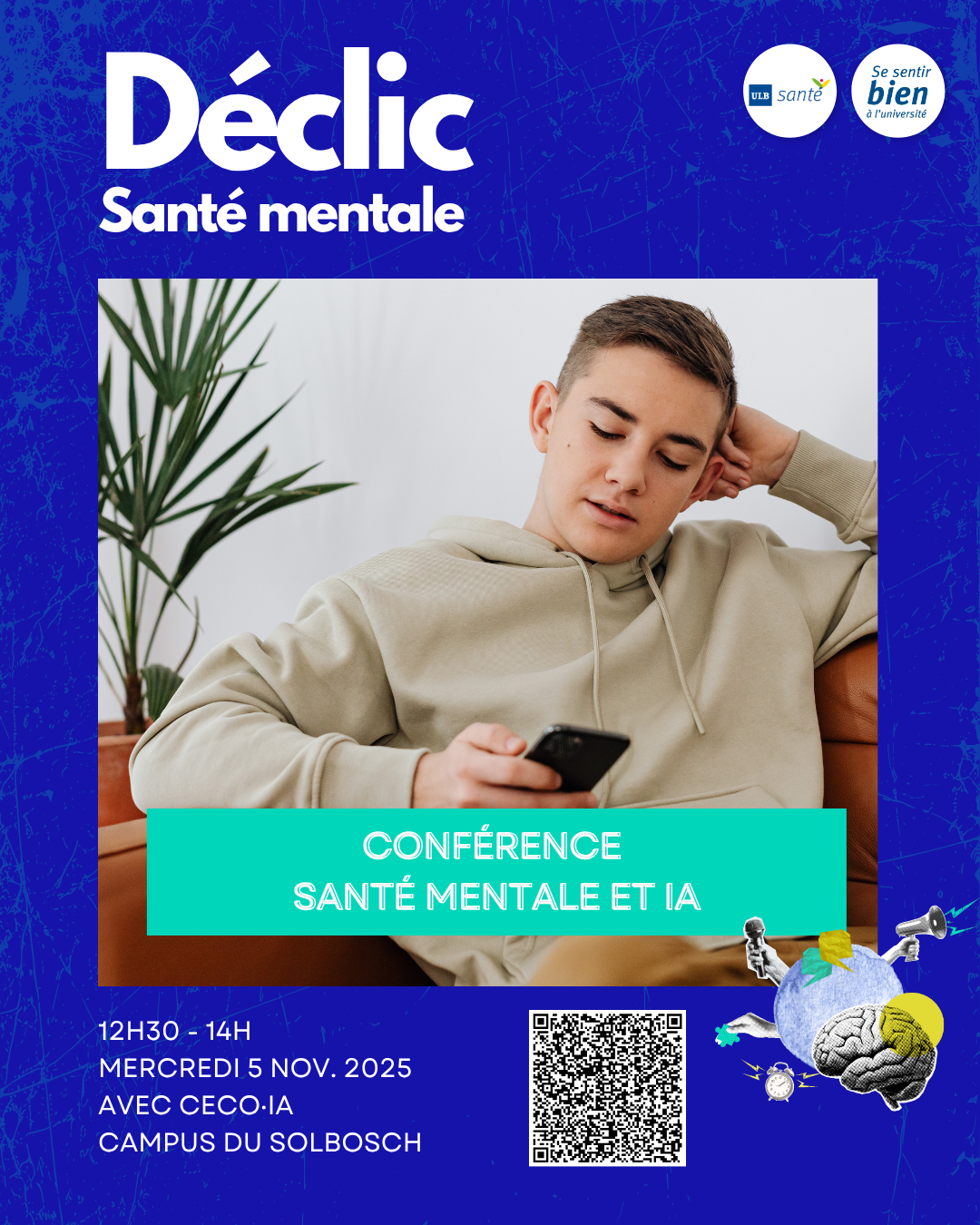 Mercredi 5/11- 12h30-14h - Informer : conférence "IA et santé mentale" avec CeCo·IA - campus du Solbosch