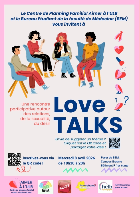 Le Centre de Planning Familial Aimer à l'ULB (cpf AAU) et le Bureau étudiant de la faculté de médecine (BEM) vous invitent à un rencontre participative autour des relations, de la sexualité et du désir.