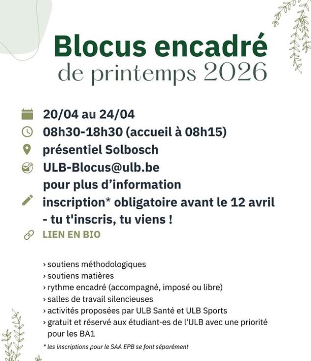 ULB Santé et ULB Sports participent au blocus encadré du SAA ! Participez aux différentes activités pour faire une pause santé et bien-être