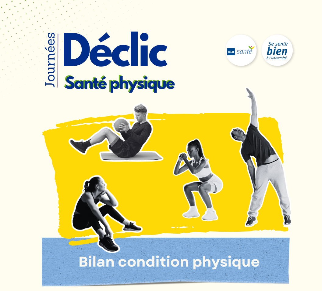 - Bilan condition physique - Déclic Santé Physique 202612 janvier 2026ULB Sports et ULB Santé vous invitent à effectuer en 30 minutes un bilan de votre condition physique